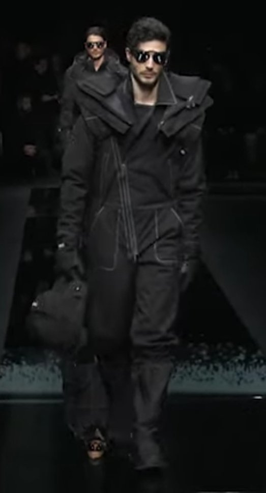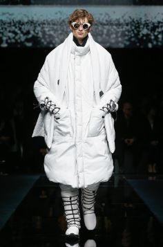 Lors de ce défiles il a quelques tenues qui mon clairement, littéralement séduit si je peux dire(rire) ! Bien-sur il se peut que vous n’ayez pas le même avis que moi et sa c’est normal. J’ai aimé ces tenues, dont les deux premières, comme vous voyez juste en dessous. Les mannequins sont vêtus de tenu qui sont à 90% blanche. Ce que j’ai aimé dans ces tenues ces l’univers des cosmonautes, l’effet tenue blanche pour aller sur Mars, vous voyez ce que je veux dire, j’ai trouvé sa tellement originale surtout de la part de Giogio Armani ou par mon expériences et même de l’image qu’on a en tête c’est des vêtements élégant, d’un costard cravate ou d’une sacoche de luxe noir en cuir, mais pas à sa ! Ou la on retrouve cette fameuse tendance de la doudoune longue qui arrive en bas des jambes . Sans oublier un détail énorme, les lunettes.