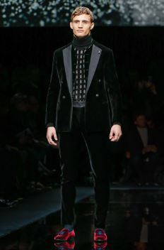 J’ai remarqué une tenue qui m’a laissé sans voix, j’ai trouvé sa sublime, je me suis dit » Ah oui, ça c’est d’élégance, du gentleman ». Je veux bien qu’il est un beau garçon qui viennent me chercher à la maison pour aller au bal comme dans les films Américains(rire) ça serai pas mal (rire). Trêve de plaisanterie, on remarque que sa tenue est toute noire et qu’il porte un ensemble en velours un tailleurs si je ne me trompe pas. Mama j’adore ! C’est vraiment la mode Italienne incarnée c’est un truc de dingue. Je vous épargne le prix (rire)